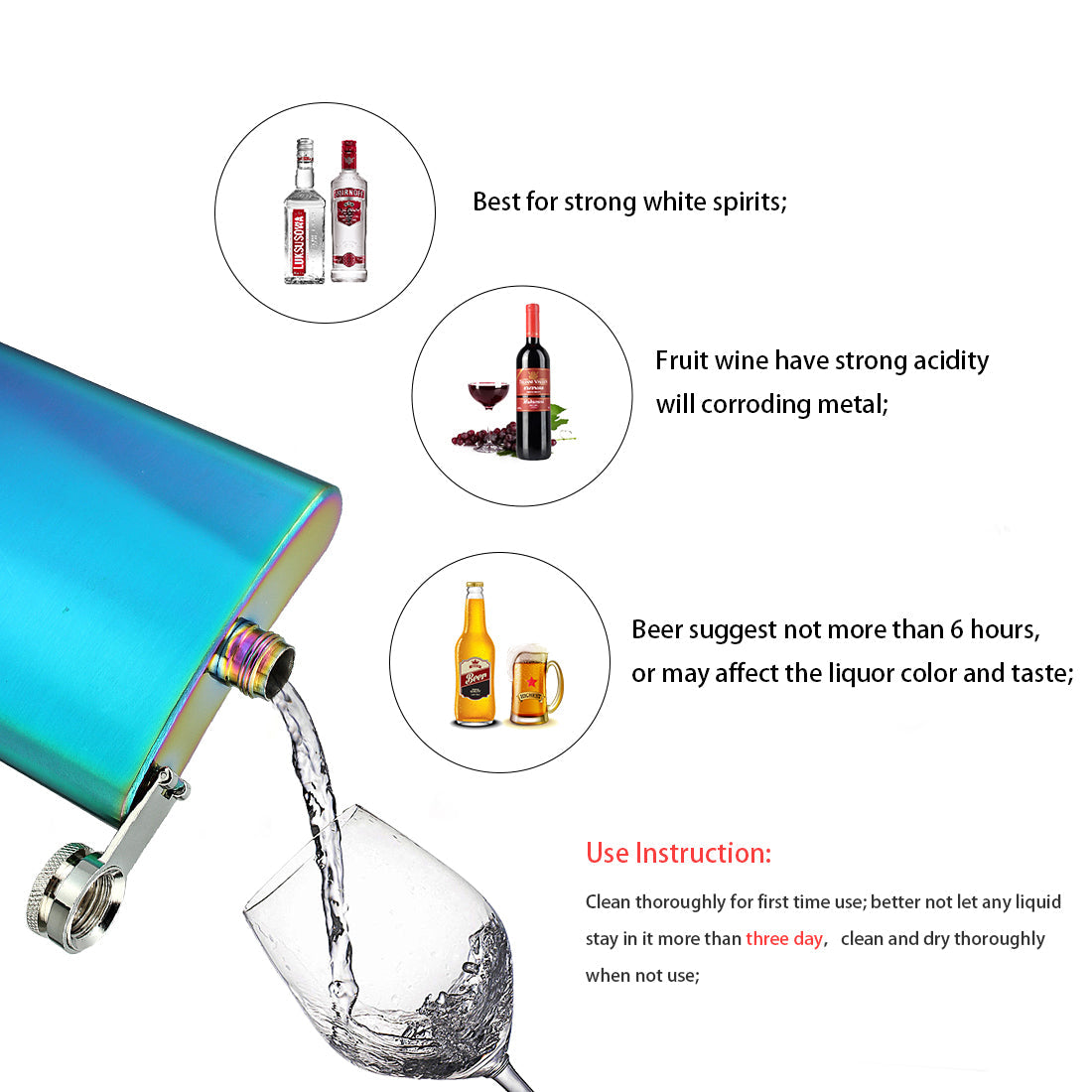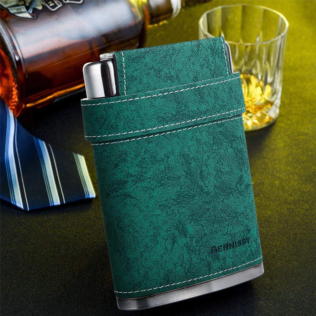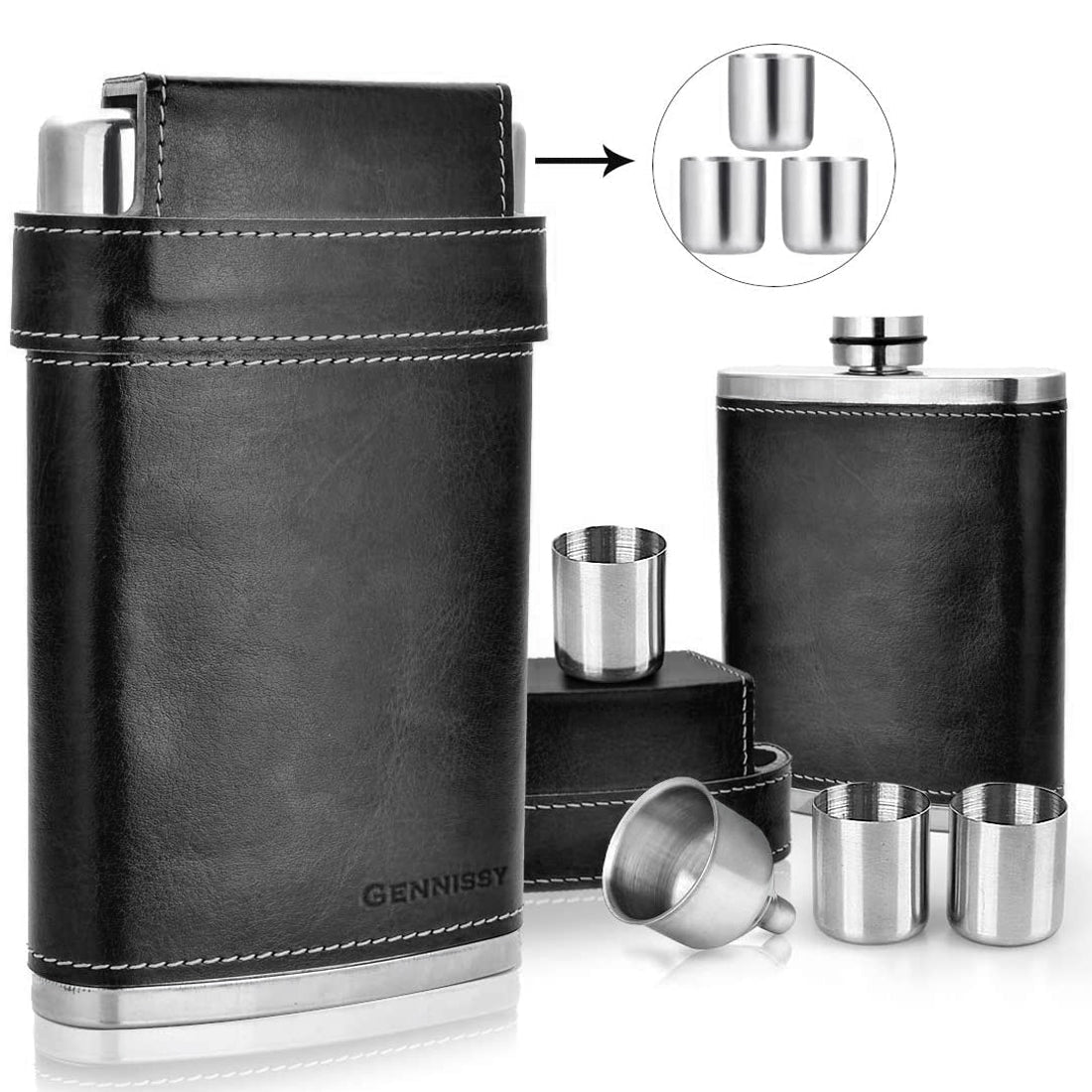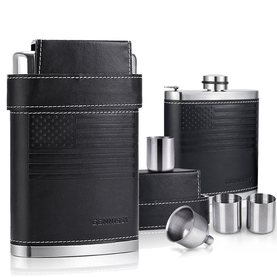 100 % LEAK PROOF - High-frequency welding laser-free solder, thick stainless steel lid thread processing, air-pressured and quality controlled.wrapped in brown PU leather. The cap seals tightly to make sure no vodka, whiskey, bourbon or other favorite beverage will leak out or wasted.